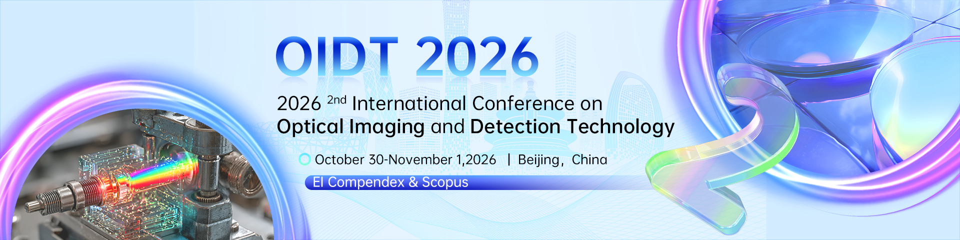 The 2026 2nd International Conference on Optical Imaging and Detection Technology (OIDT 2026), organized by Beijing Information Science & Technology University (BISTU), will be held from October 30 to November 1, 2026, in Beijing, China. This conference will focus on cutting-edge research topics in optical imaging and detection technology, providing an international forum for researchers, professors, scholars, and engineers from universities, research institutes, and industry worldwide.